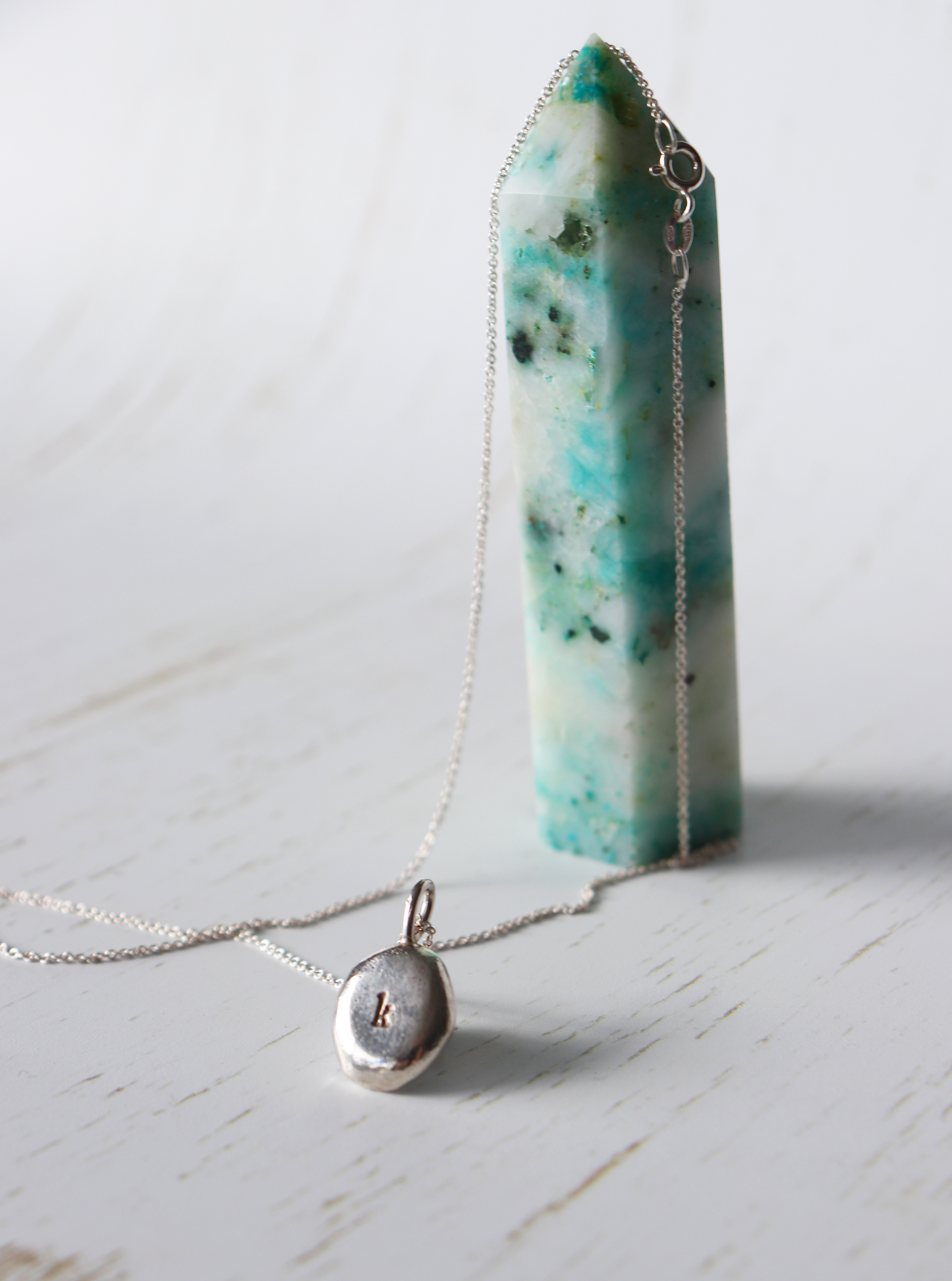 Each pendant will slightly differ in shape and form, but will be hand stamped with the initial of your choice to make it a personalised piece. (Please leave your initial of choice in the notes at checkout)
